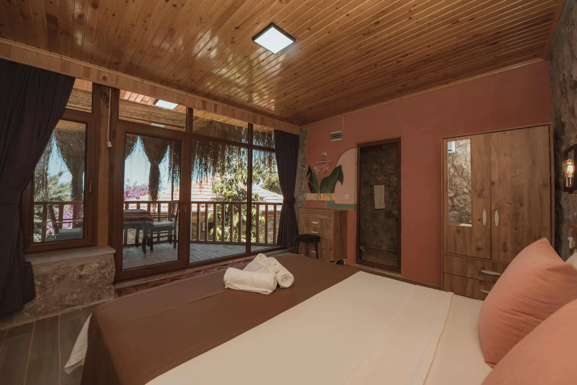 Faralya Yörük Evi bünyesindeki Nar Suite, deniz manzarası olmadan doğanın dinginliğini merkezine alan huzurlu bir konaklama deneyimi sunar. Yeşillikler içindeki konumu, ferah suite planı ve oda & kahvaltı konseptiyle mahremiyet, konfor ve sakinlik arayan misafirler için özenle tasarlanmıştır. Kuş sesleri eşliğinde uyanabileceğiniz, şehirden uzak ve dinlendirici bir atmosfer vadeder.